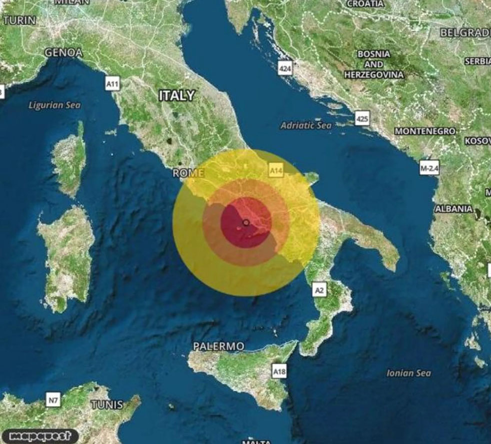 Per Rsi, la tv pubblica svizzera di lingua italiana, non abbiamo scampo: un’eruzione ai Campi Flegrei distruggerà anche Napoli, coprendola sotto trenta metri (sic!) di materiale vulcanico; causerà problemi gravi in tutto il Meridione d’Italia e avrà importanti ripercussioni su buona parte del continente europeo.